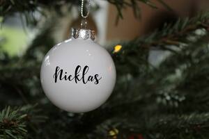 Vores julekugler i glas eller eg med navn er ligeledes perfekte som bordkort til julemiddagen.